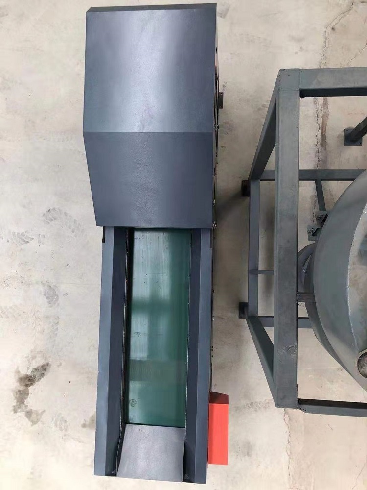 含有不銹鋼的混合物料通過振動機(jī)均勻落到皮帶傳送器上,混合物料在皮帶傳送器上向前傳送到不銹鋼探測器上方,當(dāng)不銹鋼探測器感應(yīng)到不銹鋼時將信號后傳遞給控制器,控制器控制不銹鋼探測器前方的噴氣閥噴出氣體使不銹鋼落到分離擋板上并進(jìn)入不銹鋼收集箱。