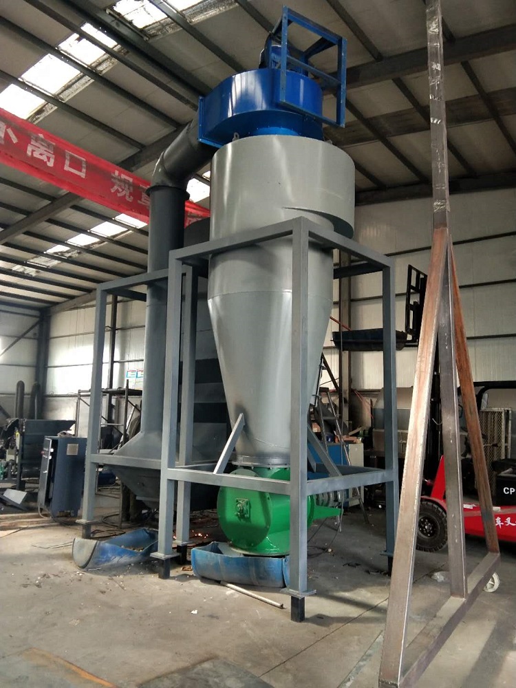 風力分選機是 借助風力來除雜分選,根據(jù)毛絮、木頭等的密度與鋁和塑料不同,通過調(diào)節(jié)適合的風速,利用空氣動力學將物料打散,然后將毛絮、木頭分離。鋁塑混合物去除毛絮就是這樣的工作流程。