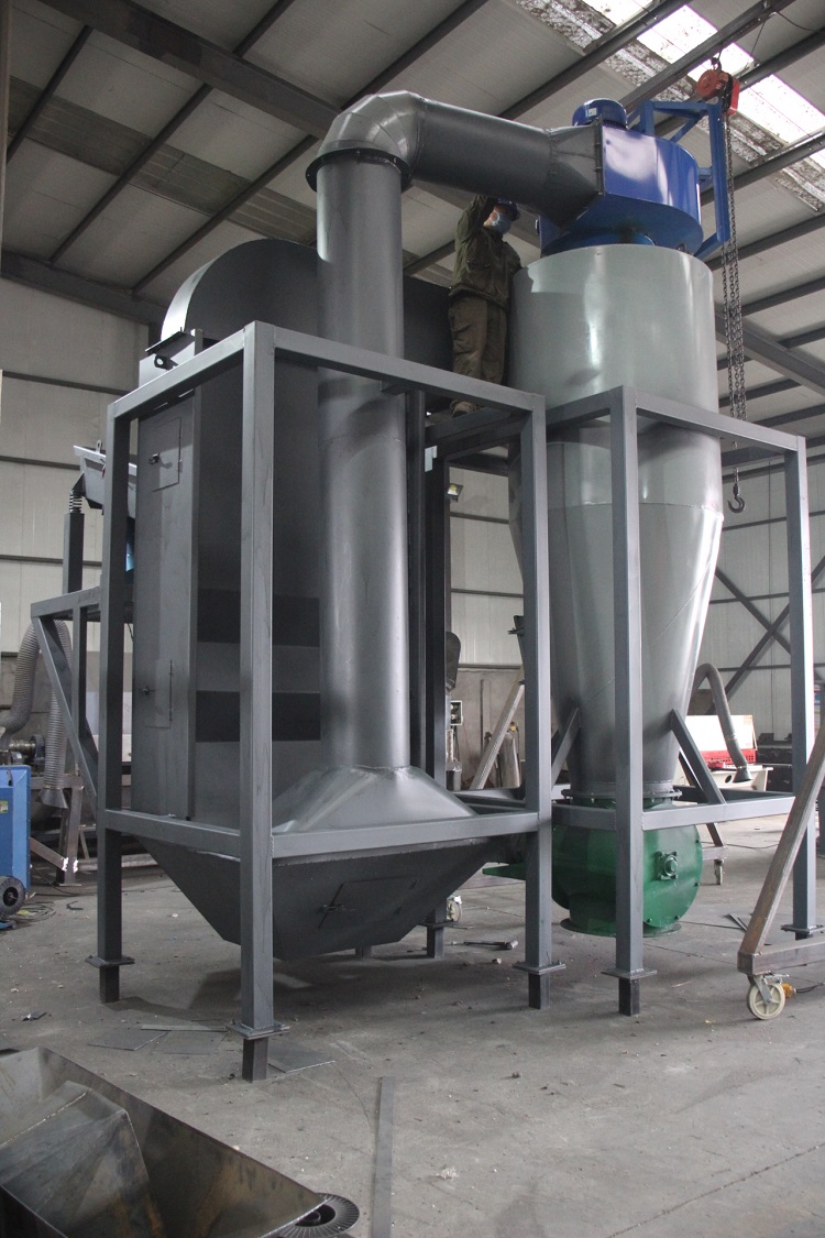 空氣分選機(jī)又叫空分機(jī),風(fēng)力分選機(jī)。當(dāng)物料進(jìn)入設(shè)備后,利用空氣動(dòng)力學(xué)原理,能夠把物料進(jìn)行打散,將輕重物料分離,輕飄料會(huì)由旋風(fēng)除塵器送至卸料斗,重物料直接由重料出口送至下個(gè)分選設(shè)備。此設(shè)備就是用來分離輕重物料的。