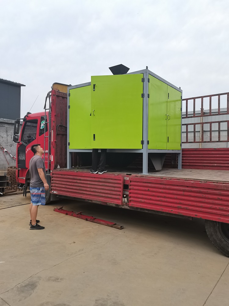 破碎后的塑料混合顆粒輸送到橡膠分選機(jī)頂部的料倉(cāng)內(nèi),再由料倉(cāng)內(nèi)的撥料軸均勻的進(jìn)入